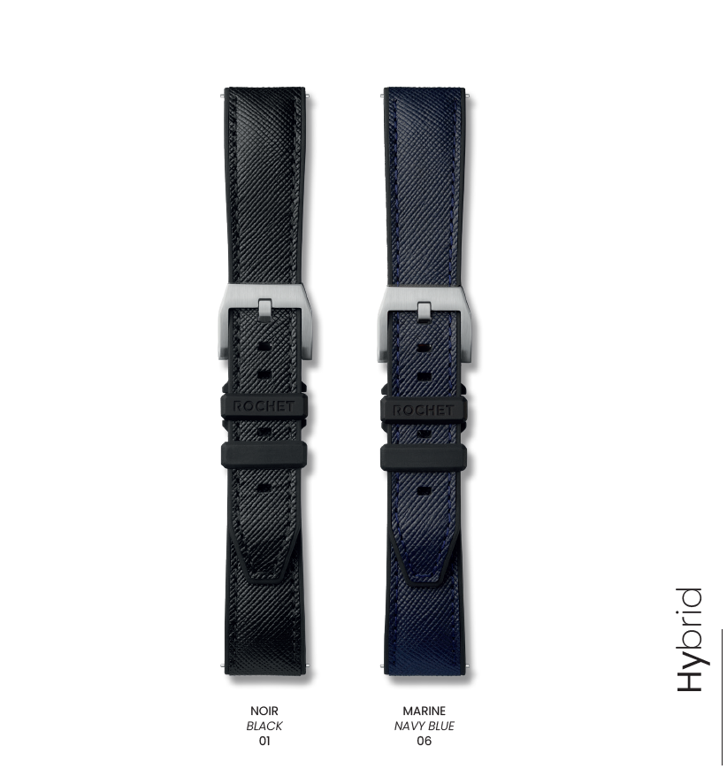 表材本革×裏材ラバーのハイブリッドシリーズが遂にロシェからも発売! 【表材】 サフィーノ型押し。エレガントさをプラス。 【裏材】 柔軟性と耐久性を併せもつNBR(ニトリルブタジエンラバー)を採用。
